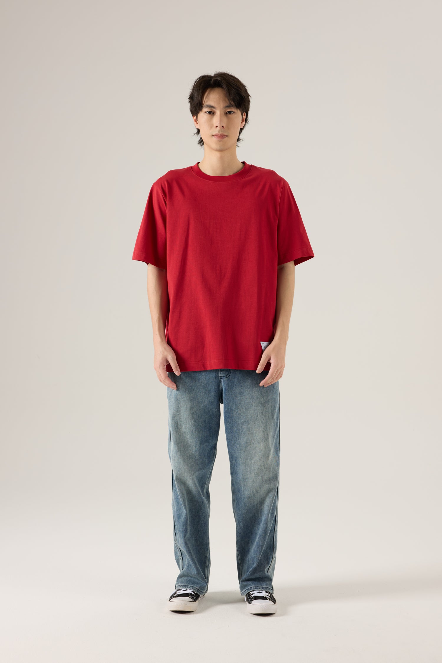 A classic crew neck tee designed with a relaxed fit and clean silhouette. Finished with a subtle hem detail for a refined, everyday look.