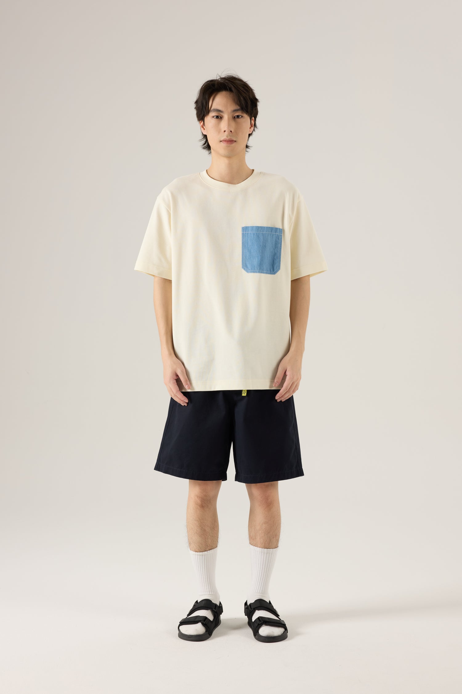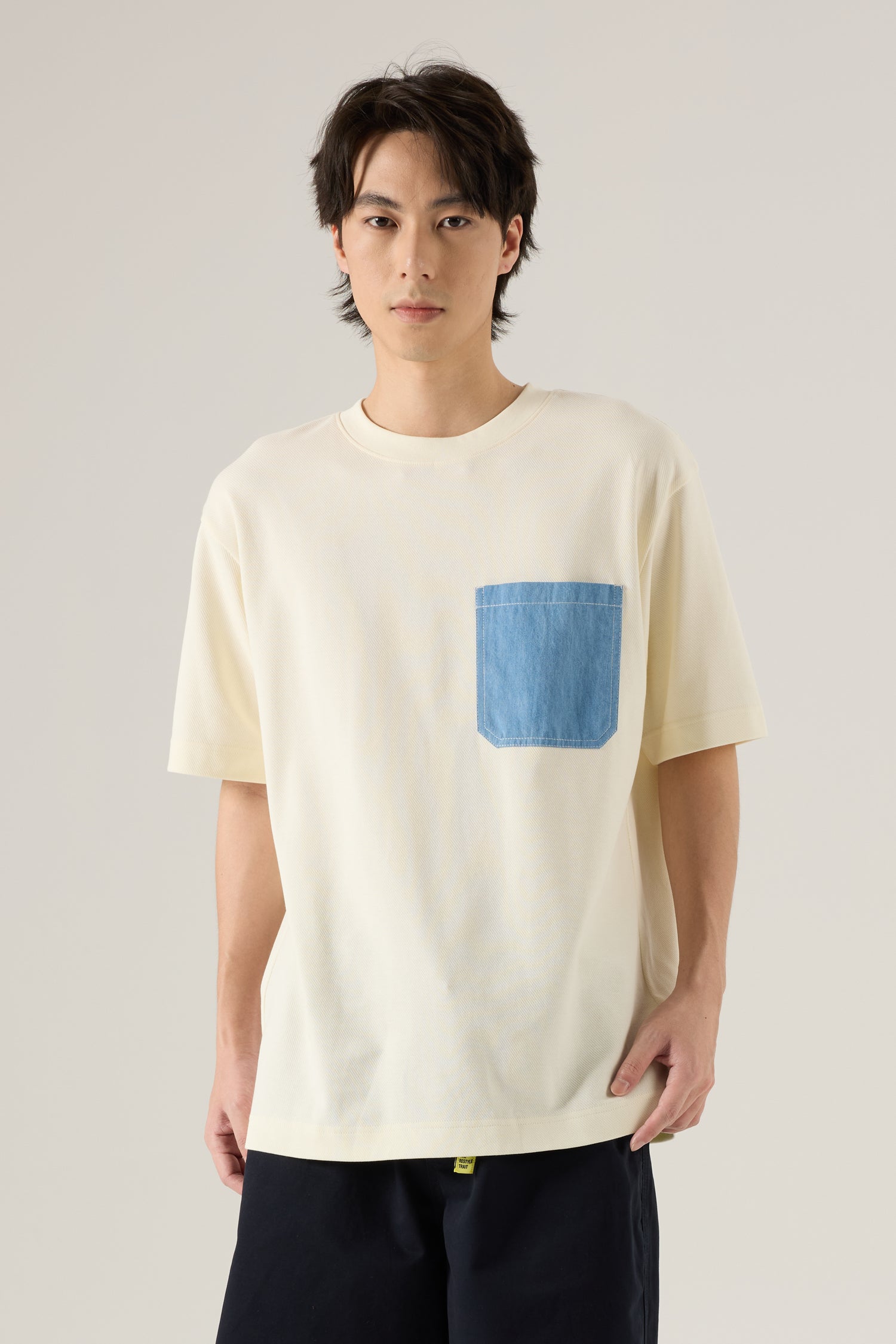 Crafted from soft twill jersey, this tee features a structured denim pocket that adds a modern touch to its relaxed silhouette.
