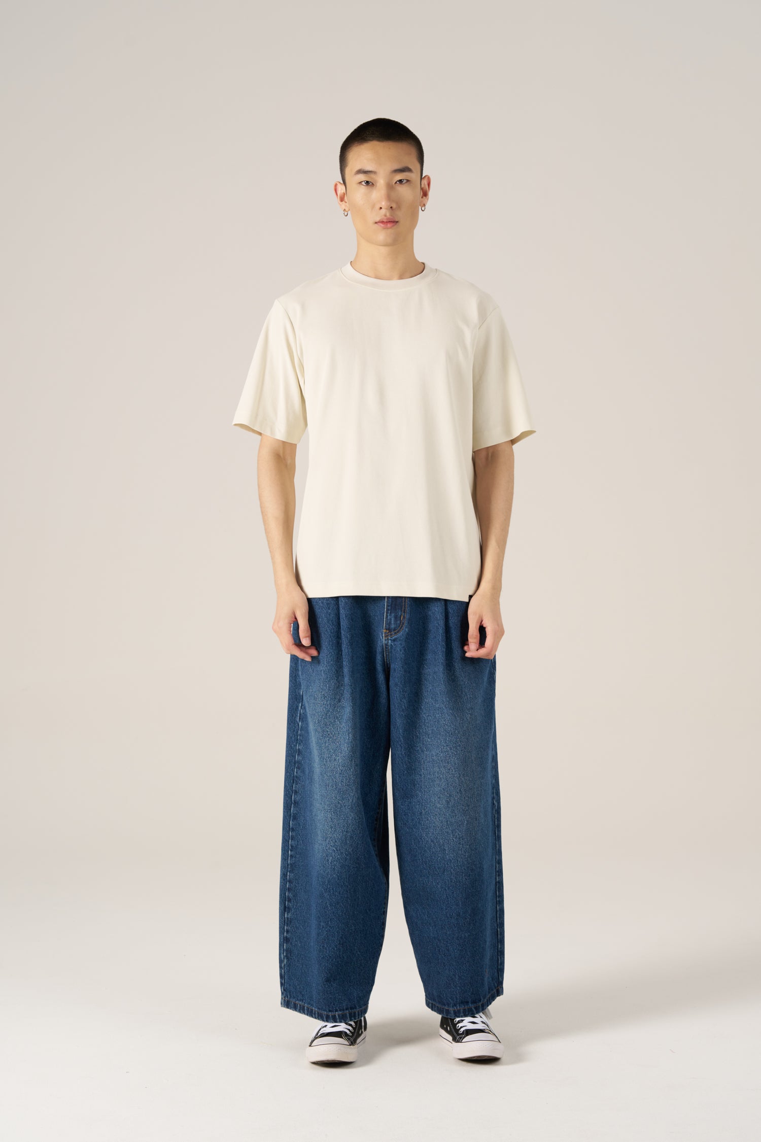 Designed in a relaxed barrel silhouette, these denim trousers showcase a curved leg that narrows neatly towards the hem for a clean, modern finish.