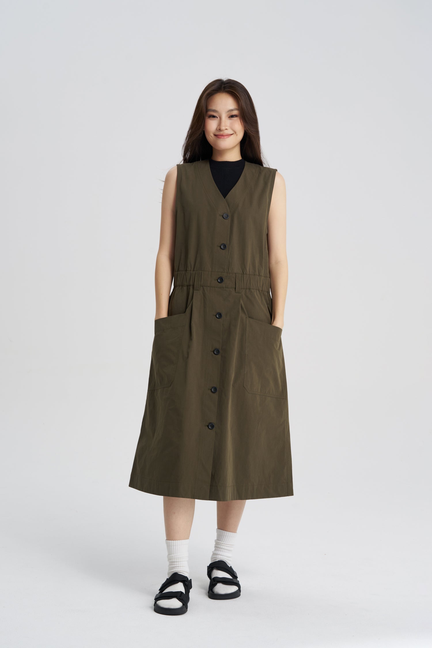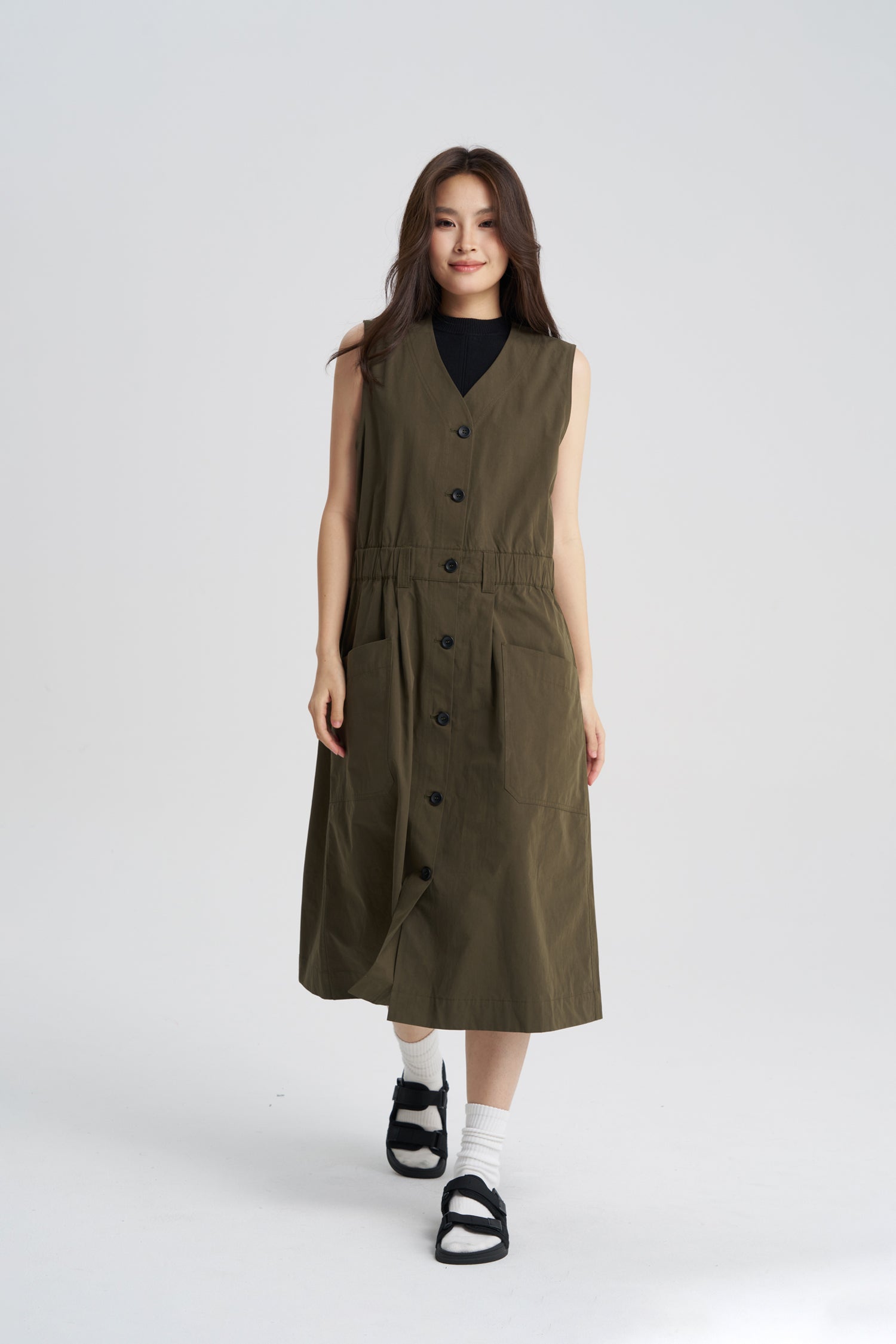 Button Front Dress - Army Green