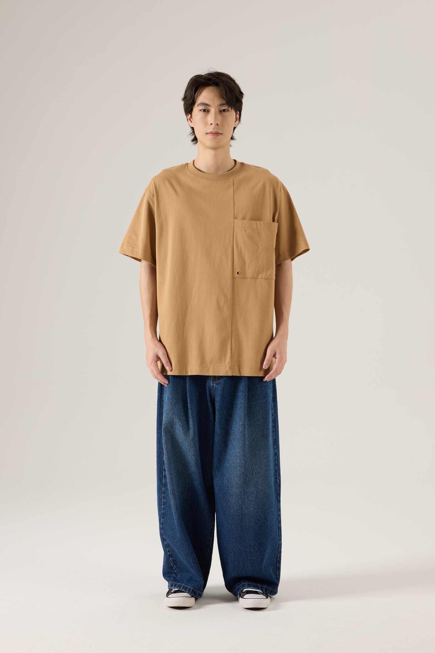 Made from soft cotton jersey, this tee features an oversized cut with subtle panel detailing and a functional chest pocket. Easy to wear on its own and pairs effortlessly with denim or casual bottoms.