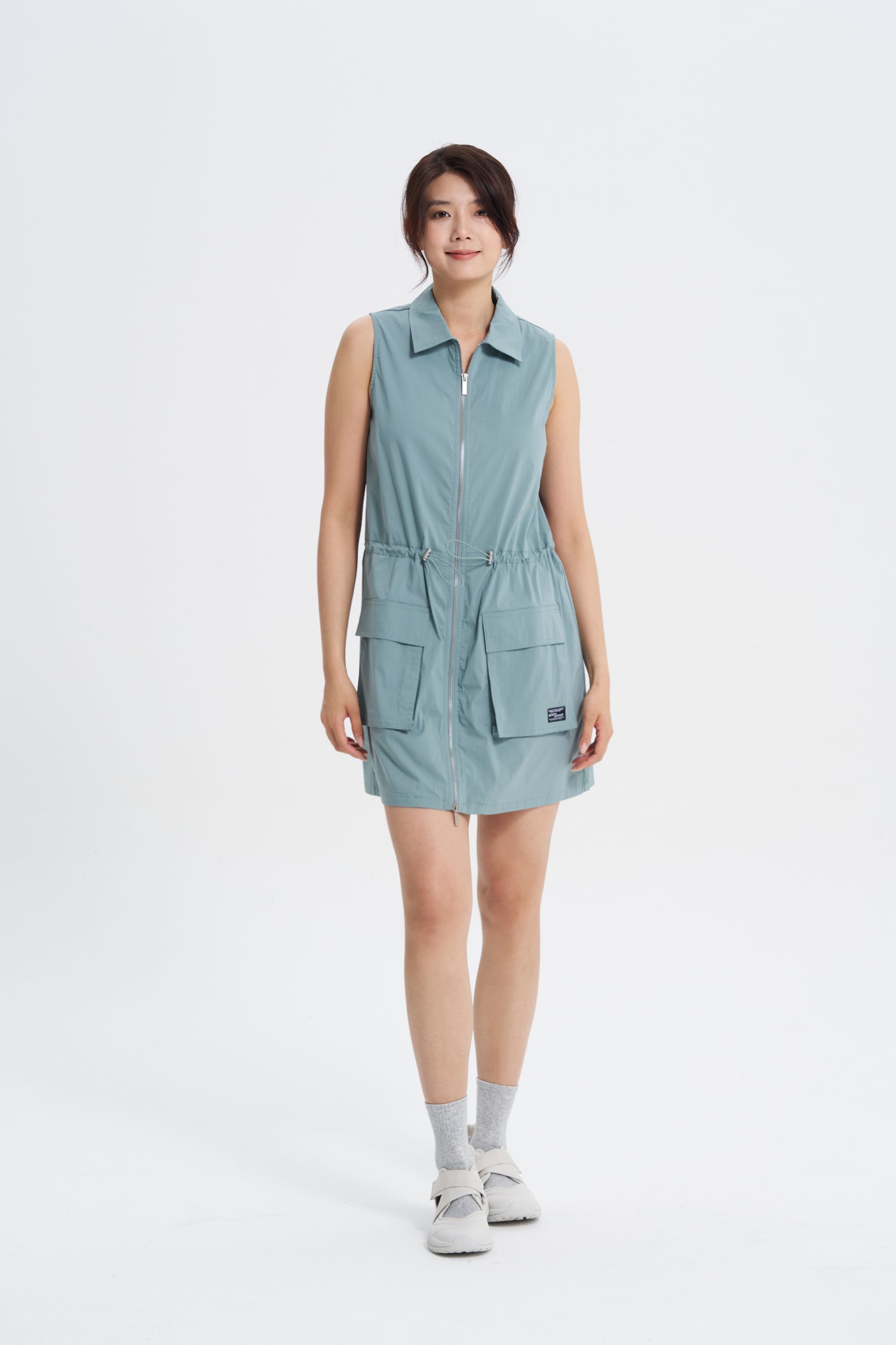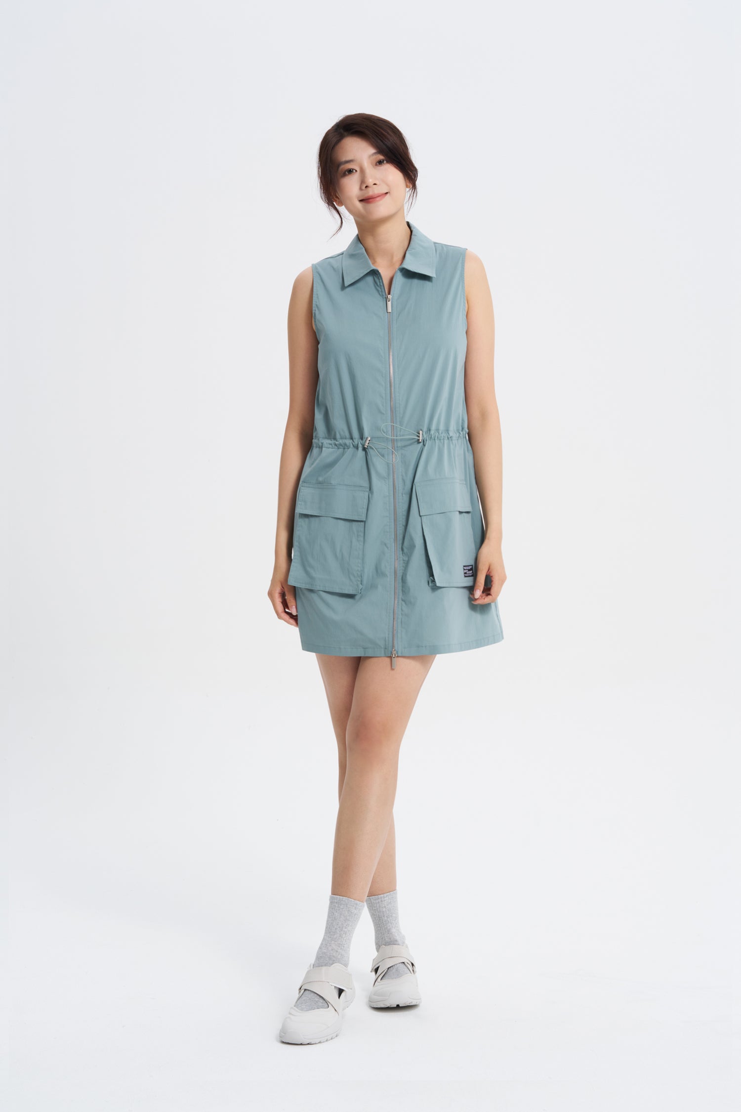 Collared Cargo Dress - Dusty Blue