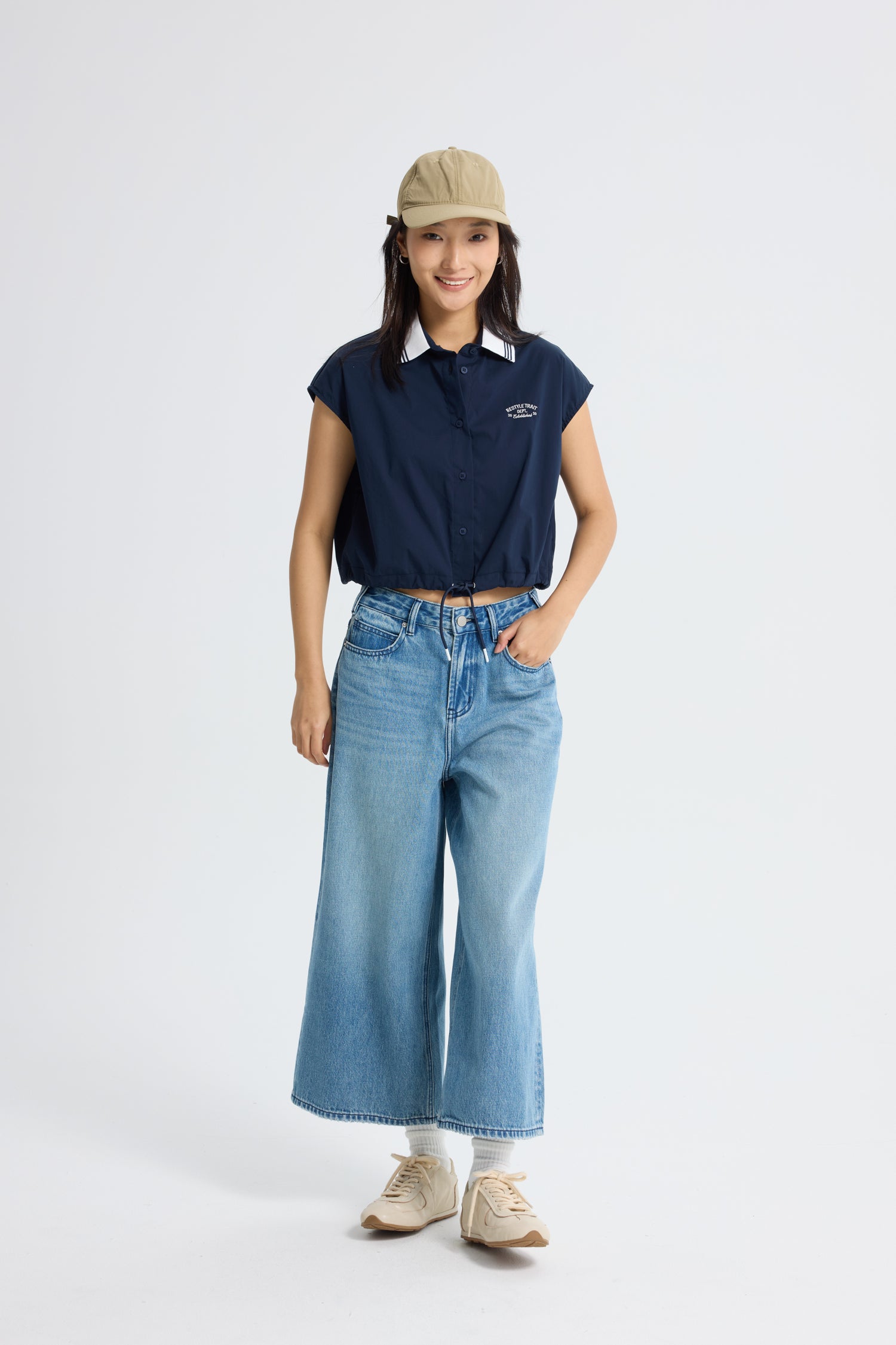 Featuring a ribbed contrast collar, this blouse adds a bold pop of style to your everyday wardrobe. The bold striped pattern brings a touch of structure and visual interest, while the drawstring at the hem allows you to personalise the fit, adding a relaxed yet flattering silhouette that can be adjusted for comfort or style. Whether you choose to wear it untucked for a laid-back vibe or cinch it at the waist for a more tailored look, this versatile piece effortlessly elevates your wardrobe.