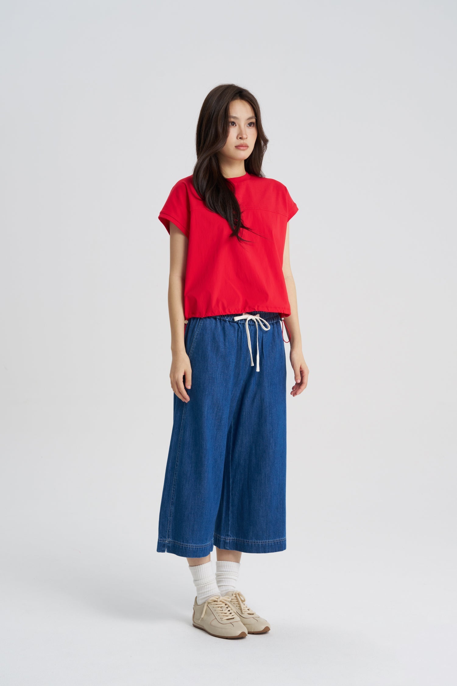 A combination of comfort and versatility with its blend of soft cotton and durable nylon fabric, this Drawcord Hem tee is a must-have addition to your wardrobe. The relaxed fit is enhanced by the adjustable drawcord at the hem, allowing you to customise the fit for a more tailored or relaxed look. With its effortless style and functional design, this piece is one to reach for time and again!