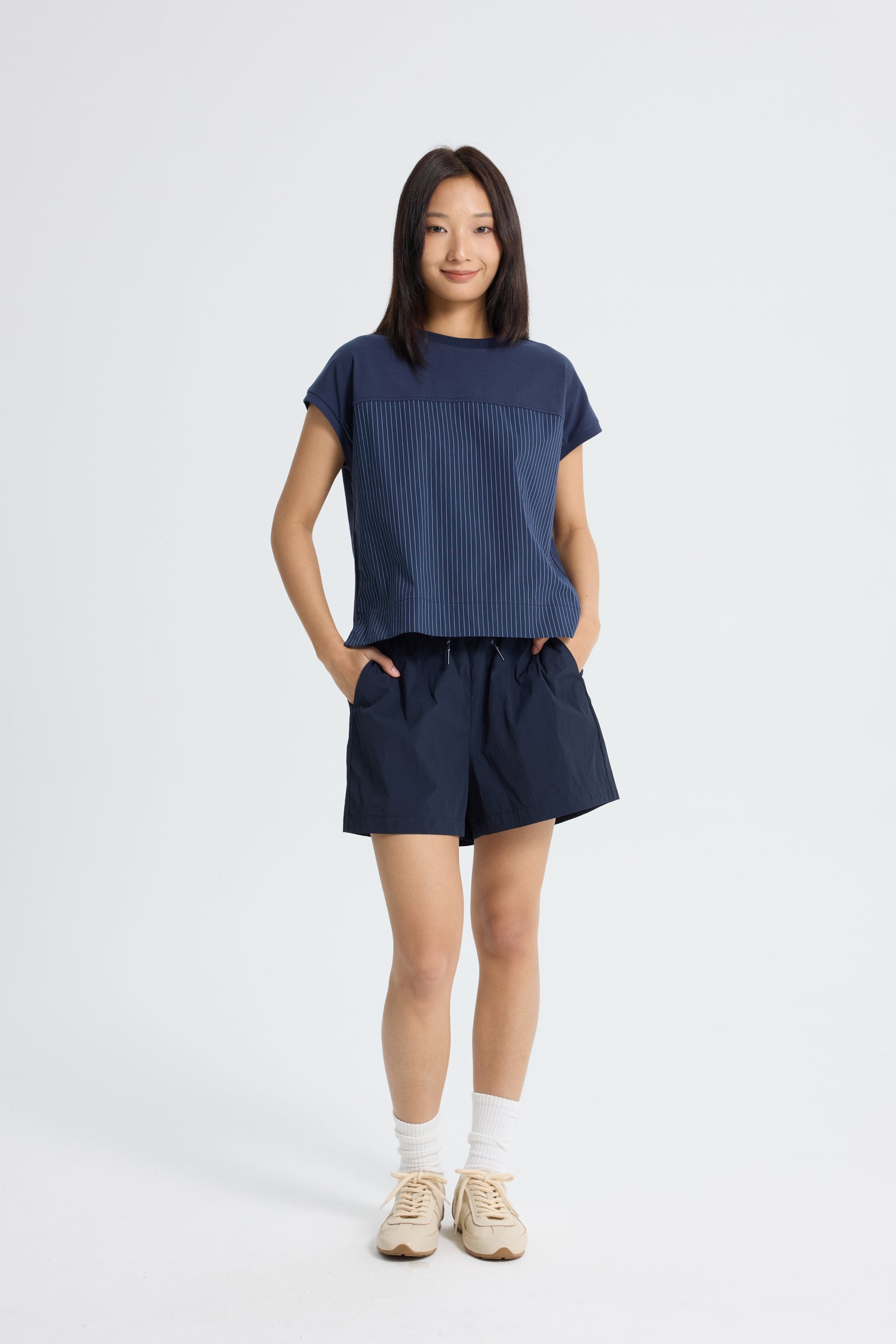 Effortlessly casual yet refined, these drawcord shorts are designed with comfort and versatility in mind. Cut with a relaxed silhouette, they feature an adjustable drawstring waist for a customisable fit. Crafted from lightweight nylon fabric, the style transitions easily from laid-back weekends to active days out. Pair it with our Colourblock Panel Blouse for an elevated sporty ensemble.