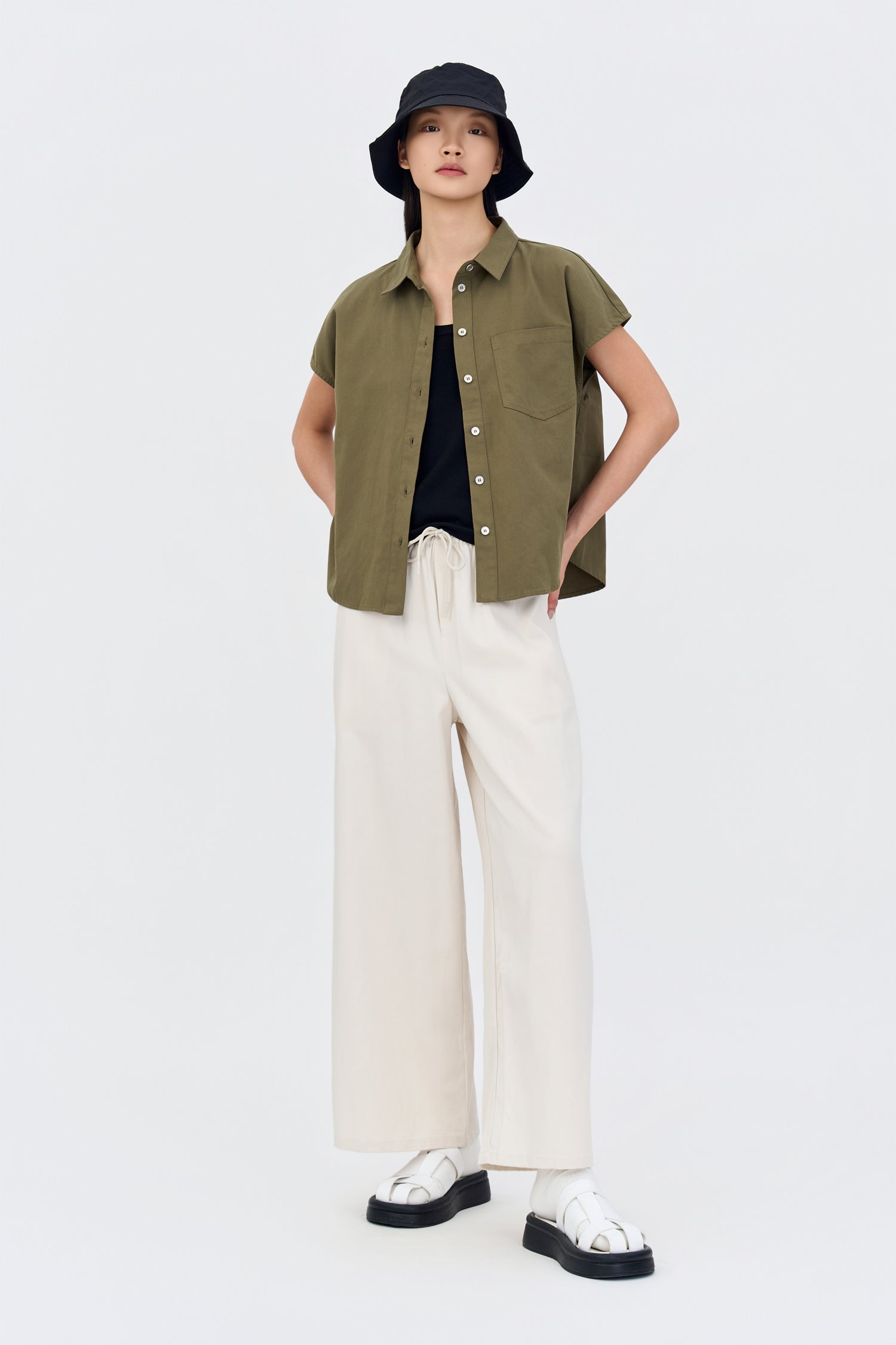 Designed with a flattering high-rise waist and a soft A-line silhouette, these shorts strike the perfect balance between structure and ease. The double pleat detailing at the front add soft volume and graceful movement, creating that effortlessly chic A-line shape that flatters every figure. Crafted from a breathable fabric with a structured finish, these shorts bring tailored refinement to any look. Whether u pair them with tucked-in blouses, cropped tops, or relaxed knits, this versatile piece adapts to your style.