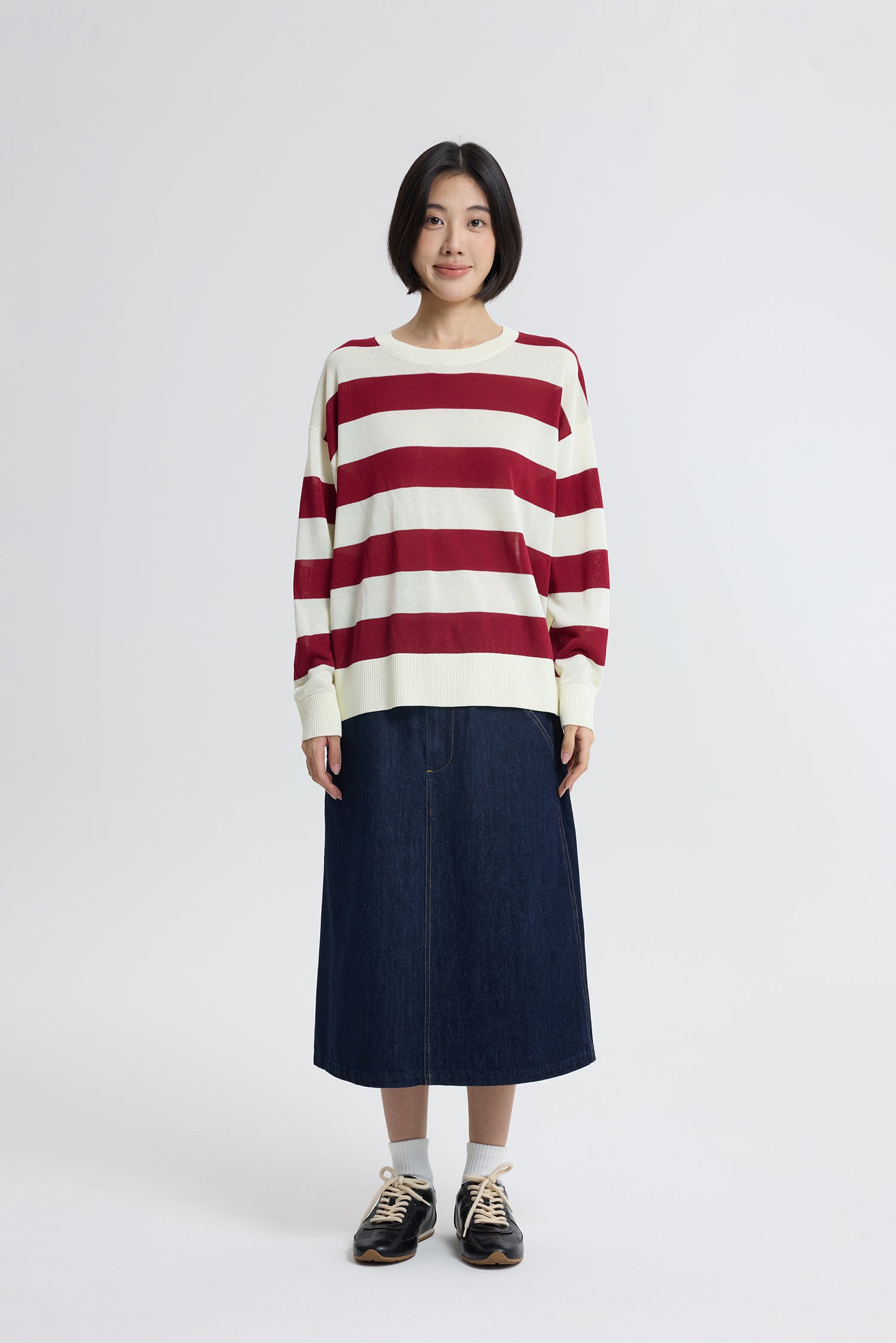 Timeless and versatile, this mid-length denim skirt is designed with clean lines and a flattering silhouette that skims the body with ease. Crafted from soft yet structured denim, it offers the perfect balance of comfort and shape. The mid length cut adds sophistication, while subtle detailing, like a clean waistband, tailored seams, enhances its modern appeal. A wardrobe essential that transitions effortlessly from casual to refined.