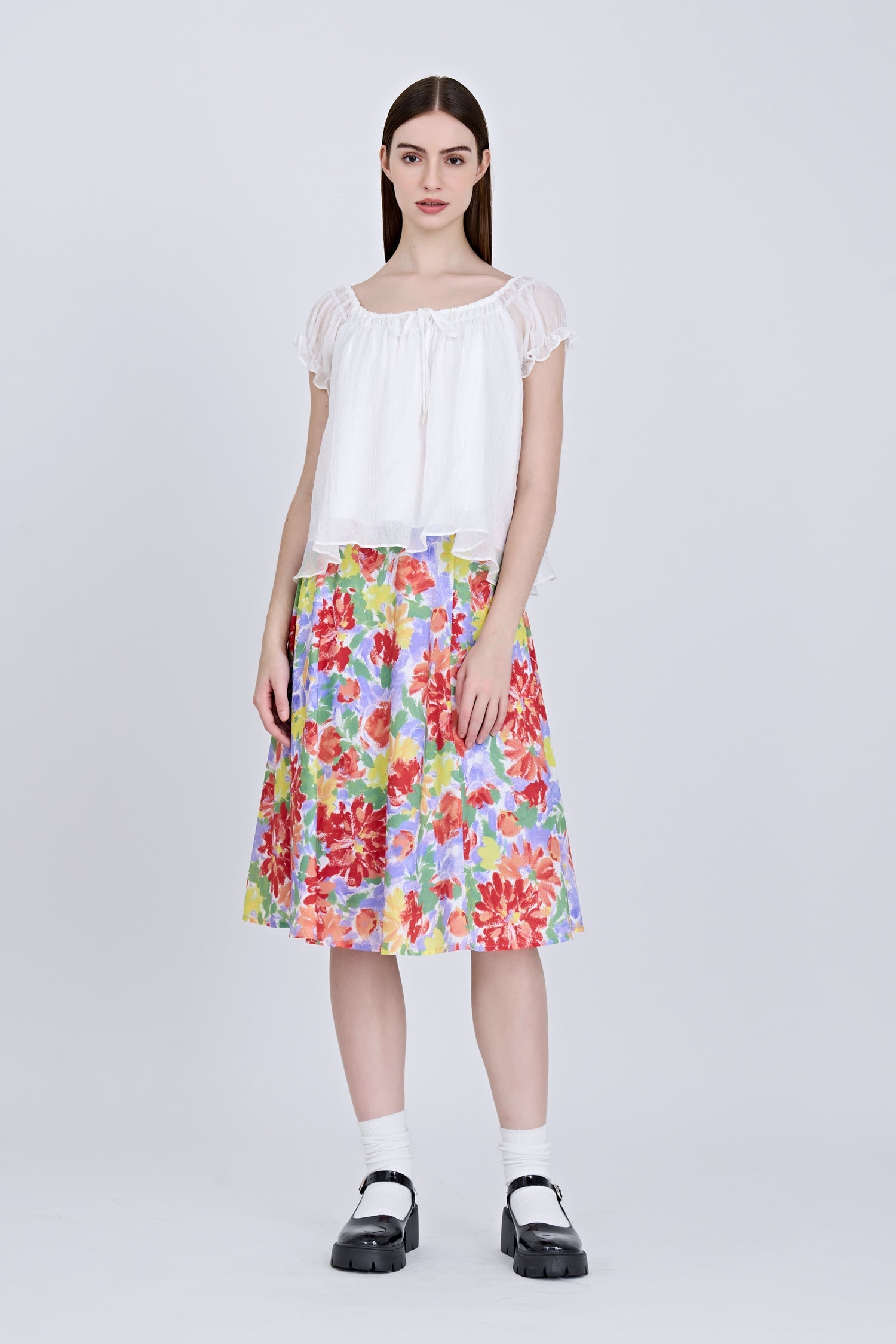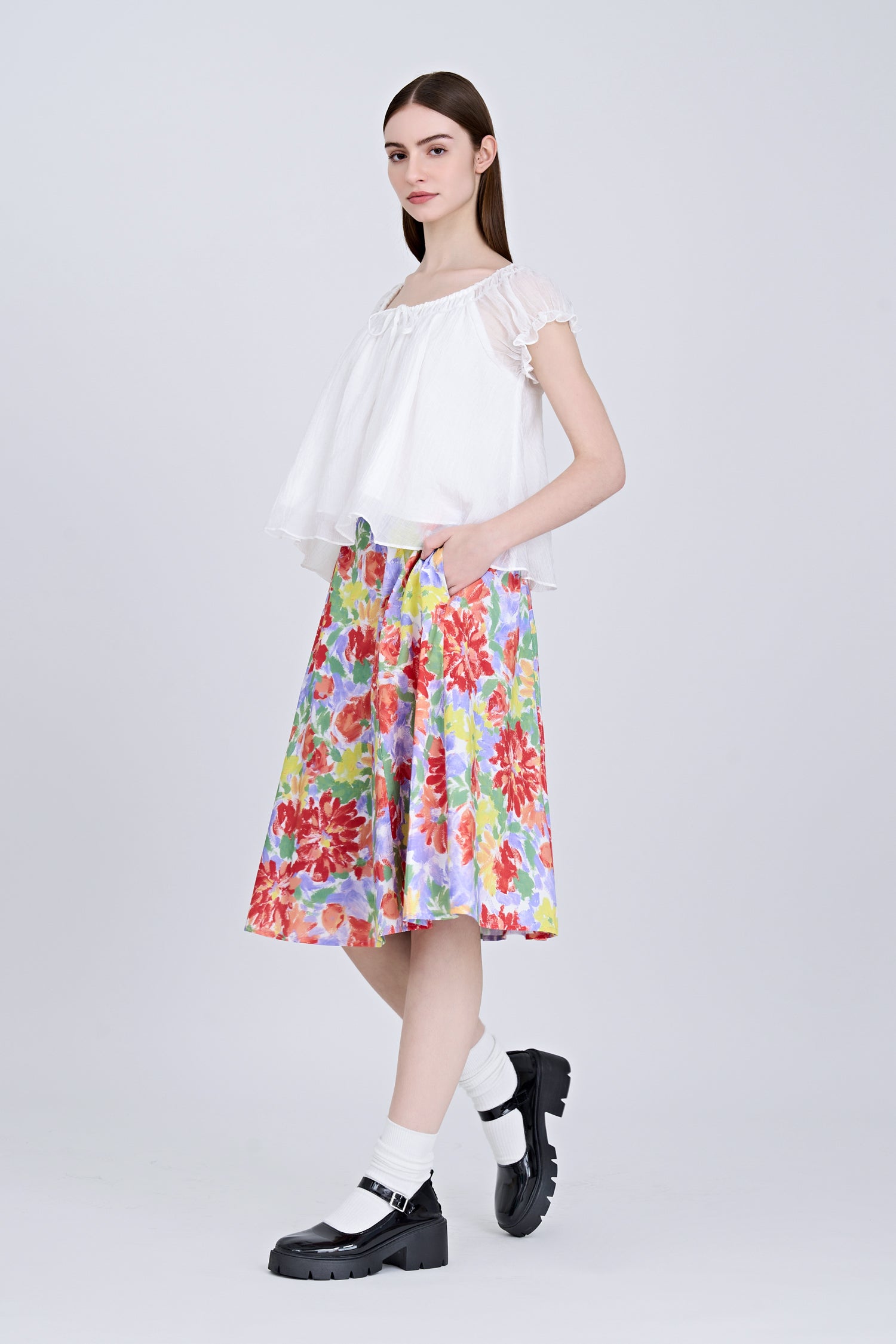 This versatile skirt features a vibrant blend of floral patterns, perfect for adding a touch of femininity and flair to your wardrobe. Crafted with an elastic waistband, it ensures a comfortable fit that flatters your silhouette while allowing for easy movement. The flare design adds a playful touch, creating a beautiful drape that sways with every step. Pair it with a fitted top and heels for a special occasion or keeping it casual with a simple tee and sandals for a day out.