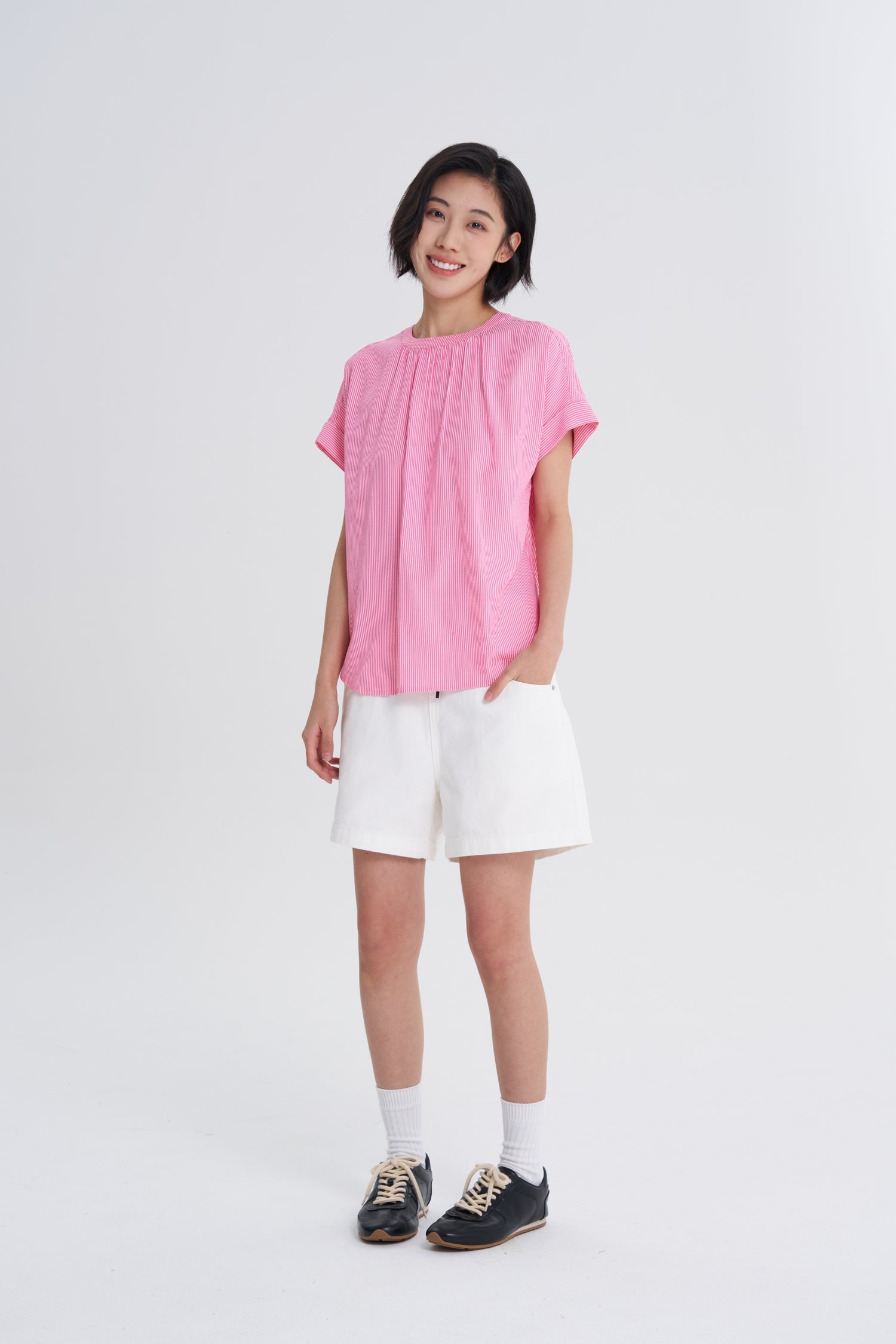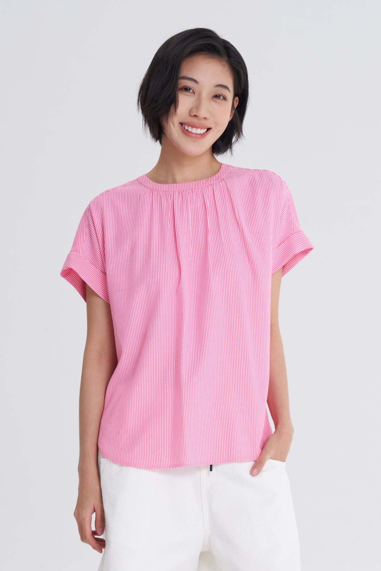 Experience comfort and style with this stripe blouse, designed to elevate your everyday wardrobe. With its soft feel and graceful drape, it offers both elegance and ease. The gathered neckline adds a refined touch, creating a flattering silhouette that highlights your natural poise. Ideal for both work and weekend wear, this versatile blouse pairs effortlessly with everything from tailored trousers to casual jeans.