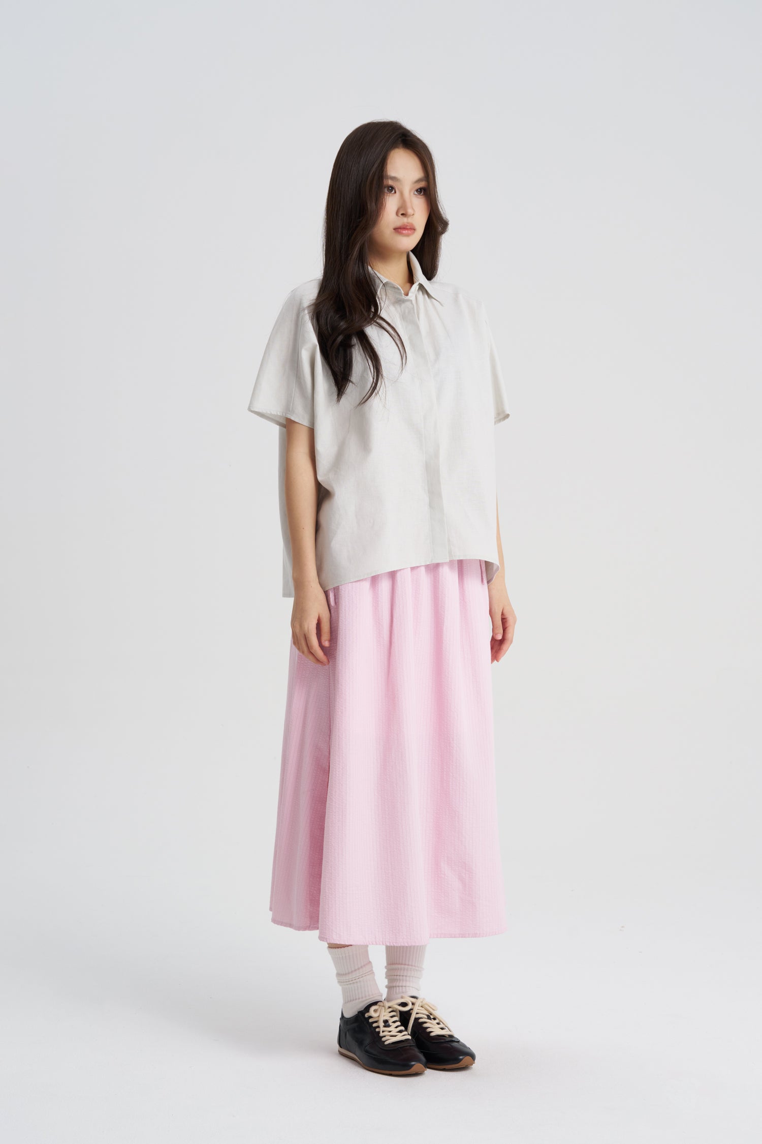 The gather long side slit skirt offers a sophisticated, modern silhouette with its flattering gathered detailing and graceful side slit. Crafted from soft fabric, this skirt provides both comfort and elegance, making it a versatile addition to any wardrobe. The long length enhances its refined design, while the side slit adds a touch of contemporary flair. Perfect for professional settings or evening outings, this skirt pairs effortlessly with tailored blouses and stylish footwear.