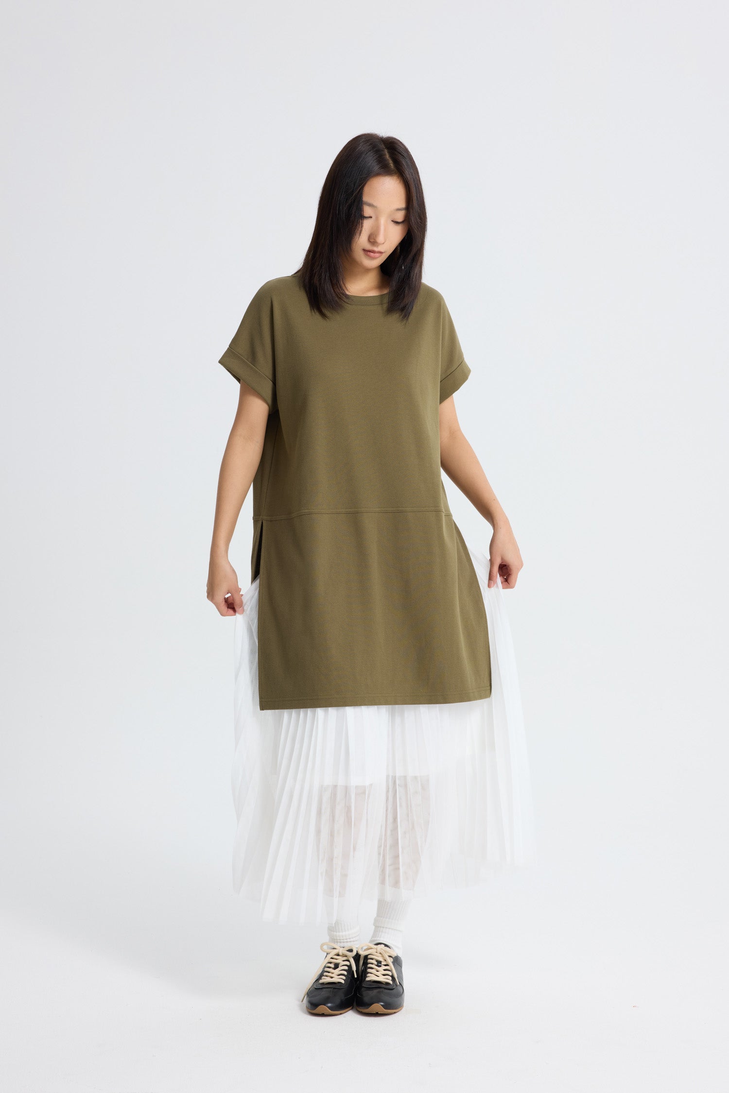 This long tunic tee is designed as a versatile styling piece, featuring a relaxed fit and dramatic high side slits for fluid movement and layering ease. Cut from soft, breathable fabric, it pairs effortlessly over jeans or skirts for a modern, elongated silhouette. Whether styled casually or dressed up, it adds dimension and edge to any outfit.
