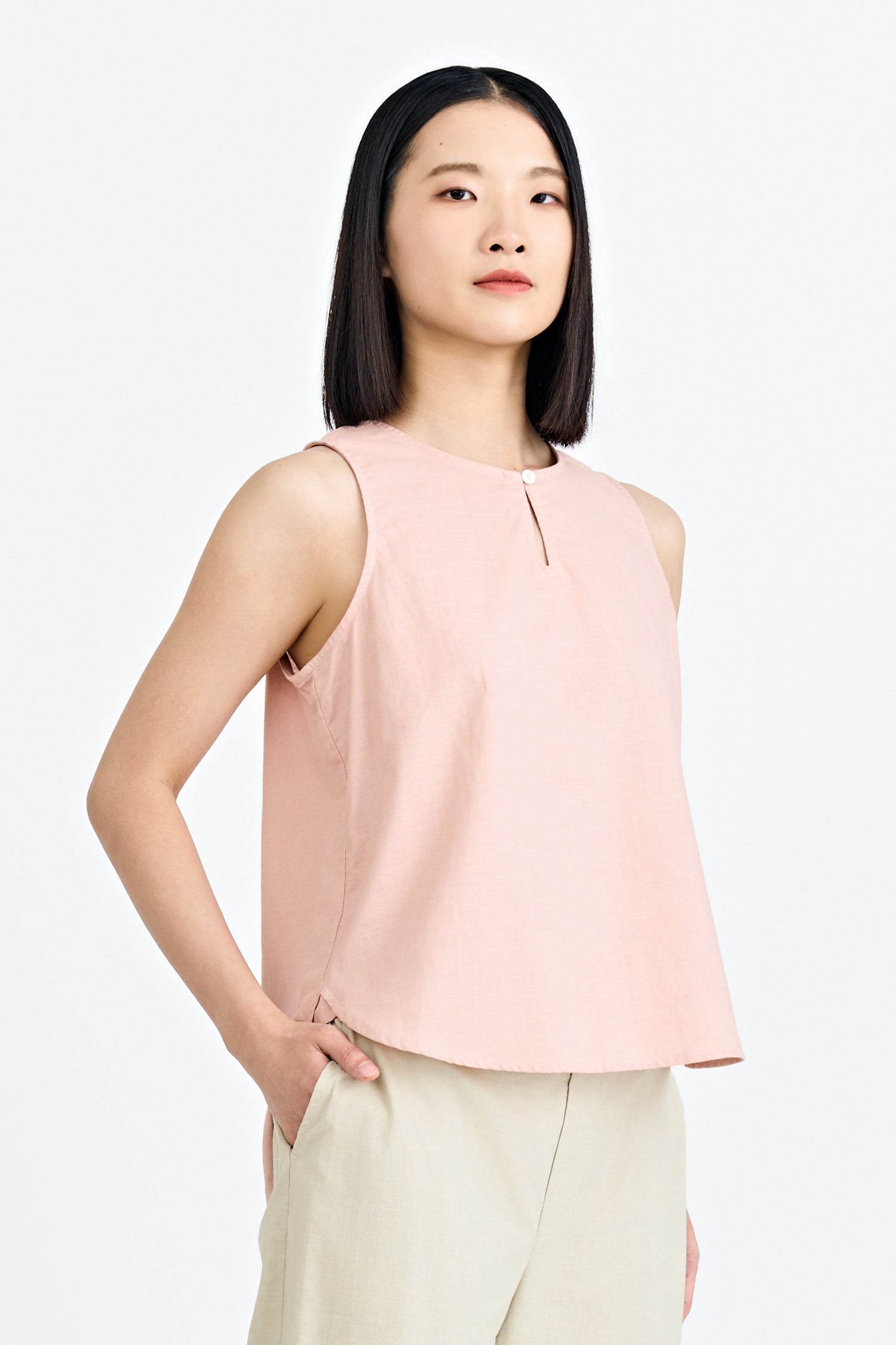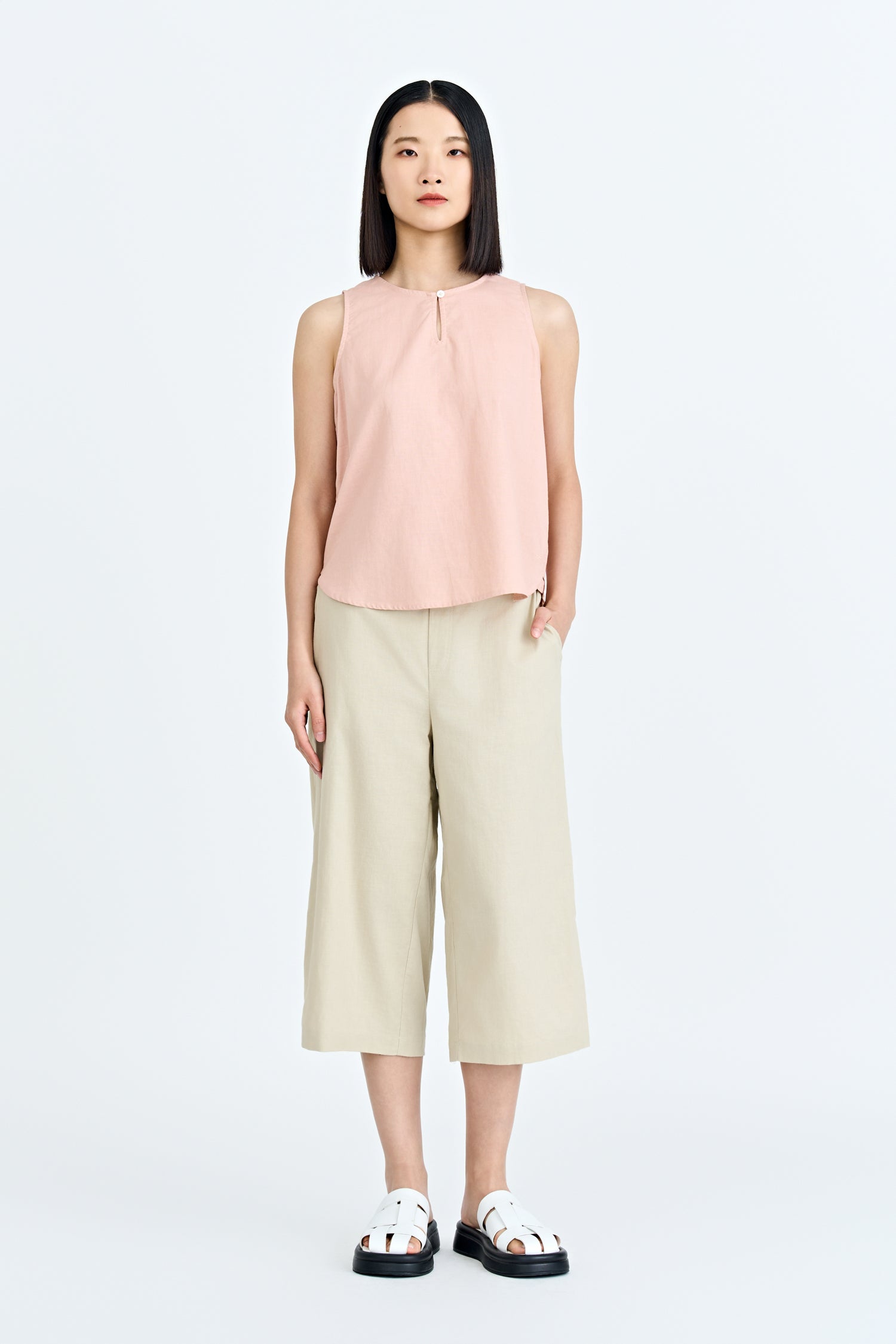 Featuring a clean, round neckline, it offers a timeless silhouette that flatters effortlessly. Its boxy fit adds a contemporary edge, creating a relaxed yet structured look that drapes beautifully on any body type. Perfect for layering or wearing solo, this top transitions seamlessly from casual to sophisticated, making it a go-to piece for both work and play.