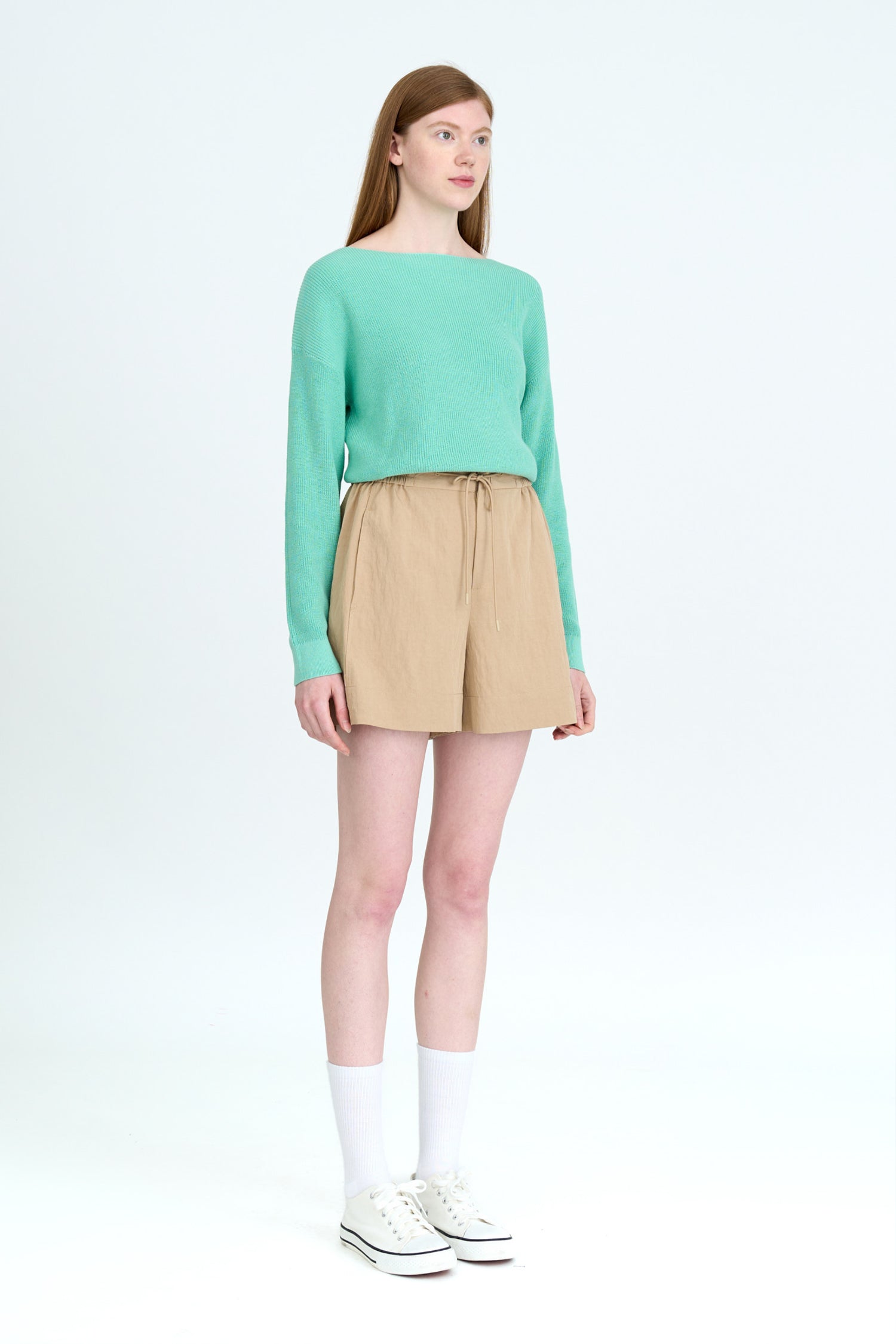 Crafted from a sumptuously soft knit fabric, this top boasts a relaxed, slouchy fit that drapes effortlessly over the body, offering supreme comfort without compromising on style. Whether you're lounging at home or stepping out for a casual outing, this knit top exudes casual chic in every stitch. Pair it with our soft Pull-up Shorts or Denim Pleated Culottes for a sophisticated ensemble that seamlessly transitions from day to night.