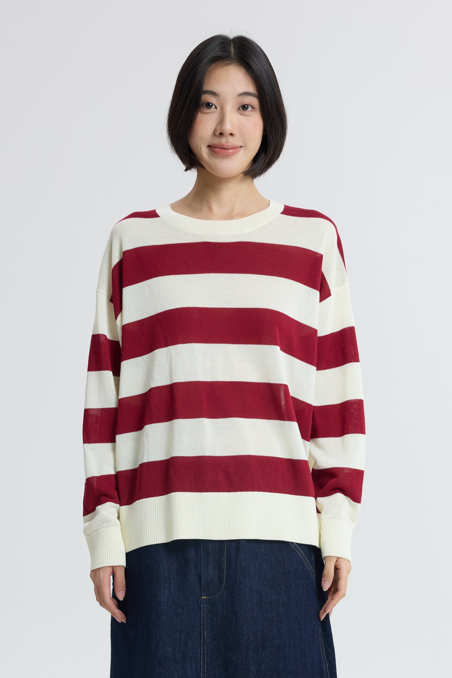 Featuring striking, high-contrast stripes, this sweater adds a bold and dynamic touch to any look. Crafted from soft knit fabric, it offers a relaxed yet structured fit that drapes beautifully. The ribbed cuffs, hem, and neckline provide a polished finish while ensuring lasting shape and comfort. Whether styled with denim for a casual-chic vibe or layered over tailored trousers for a refined edge, this sweater brings effortless versatility to your wardrobe. A must-have for those who appreciate timeless design with a modern twist