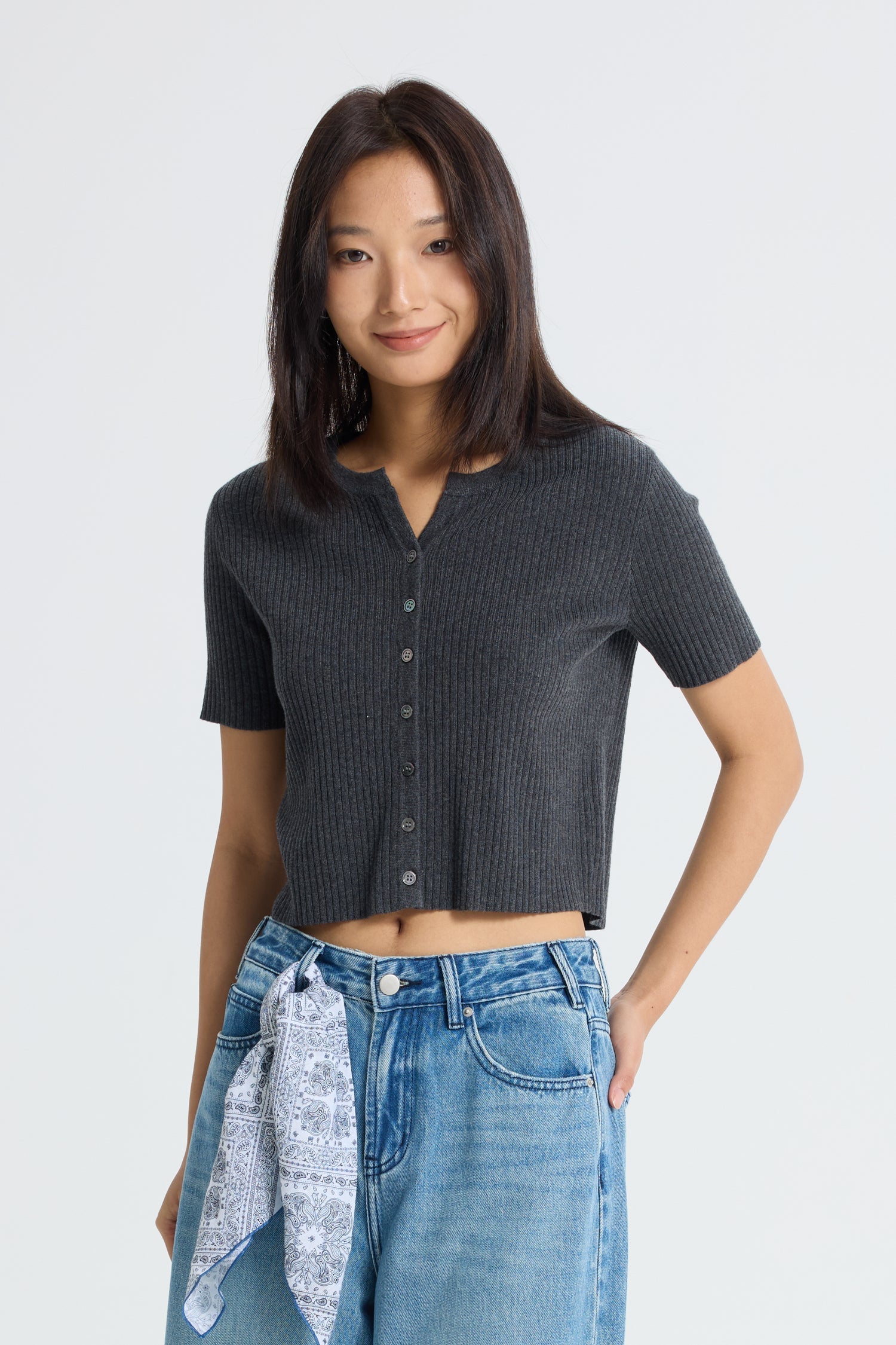 Introducing the Knitted Button Front Top, a charming blend of casual comfort and sophisticated style. This top features short sleeves and a ribbed body, offering a flattering fit that accentuates your silhouette. The button front detail adds a touch of refinement, allowing for versatile styling options. Crafted from soft, knitted fabric, it ensures all-day comfort and ease of movement.??