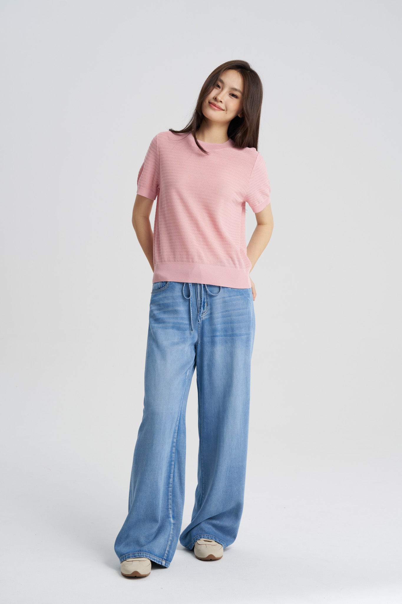 A refined knit top that combines comfort with subtle texture. Crafted in a lightweight knit, it features a clean silhouette with soft horizontal textures. Designed to be breathable and versatile, it works effortlessly as a standalone statement or layered under jackets and cardigans.