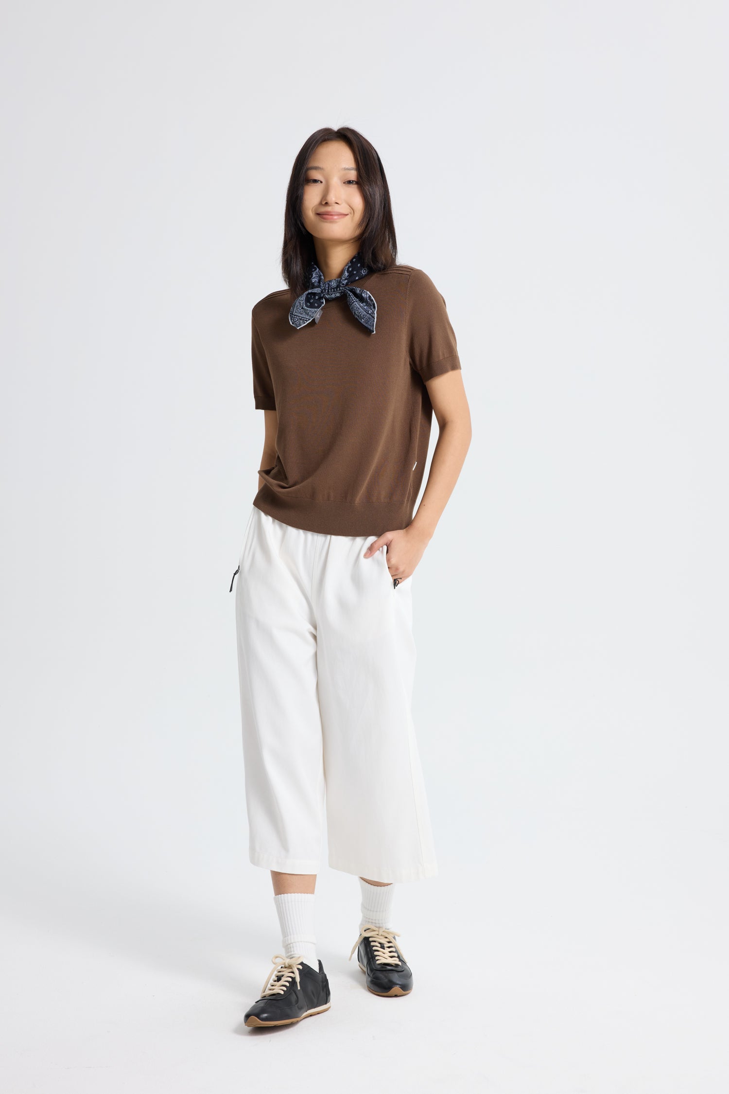 Woven from a soft, breathable yarn, this classic knitted top offers a relaxed yet refined fit that feels as good as it looks. The defining feature is its sophisticated shoulder detail, where three weaved lines add a touch of modern texture to a forever piece. Its effortless versatility allows it to transition seamlessly from polished looks with tailored trousers to relaxed weekends in your favourite denim, making it a true wardrobe essential.