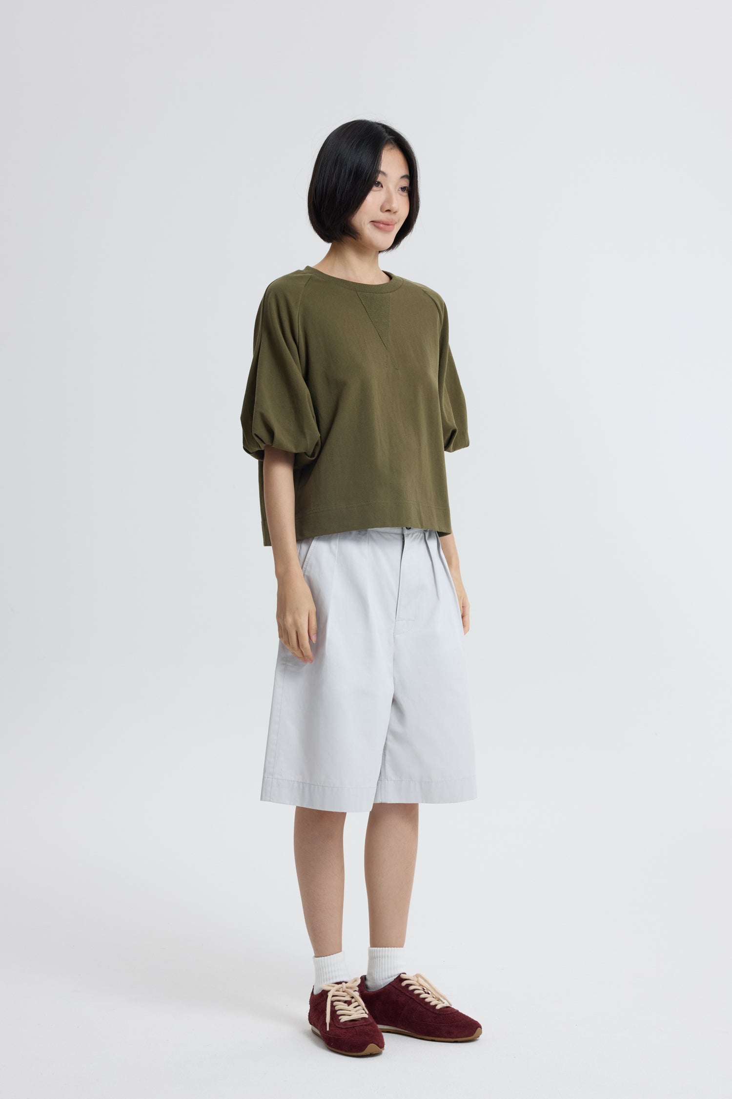 Tailored for effortless polish, these bermuda shorts feature crisp pleats and a structured silhouette that flatters and elongates. Designed with a high rise fit, they fasten with a clean two-button front for a refined, minimal look. The longer length offers a modern, modest touch ?€? perfect for both smart-casual styling and laid-back weekends. Pair them with a tucked-in blouse or relaxed tee for an easy, elevated outfit.