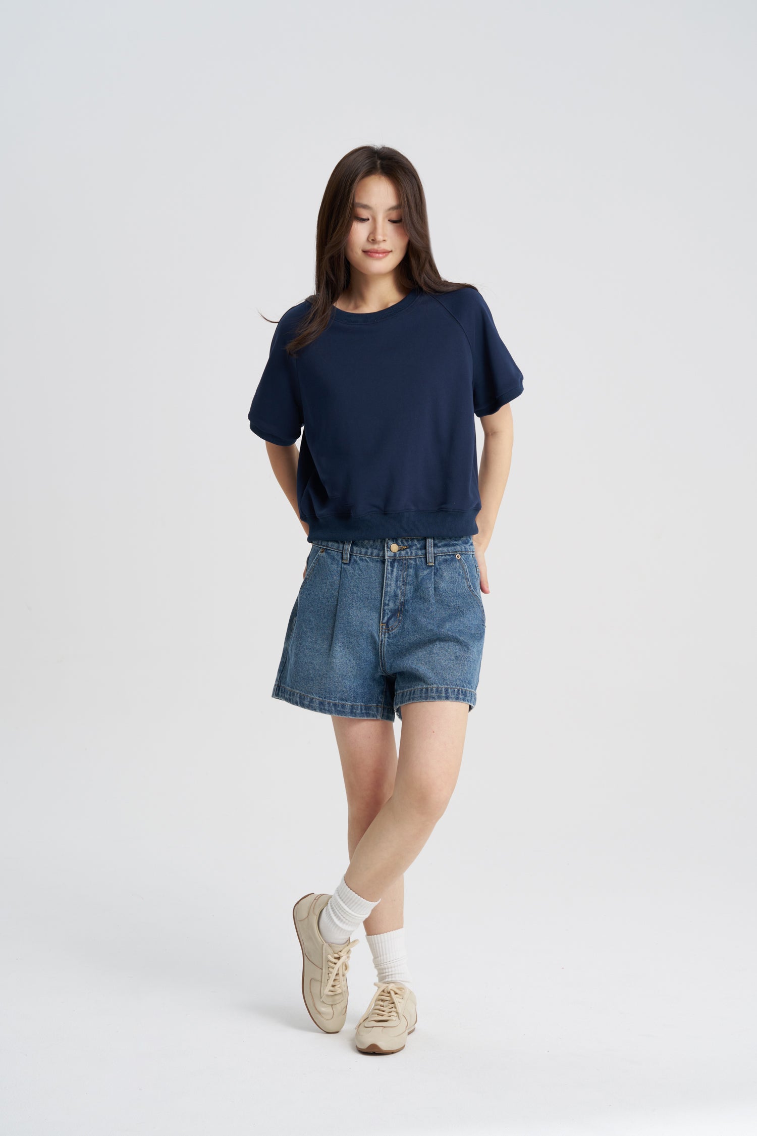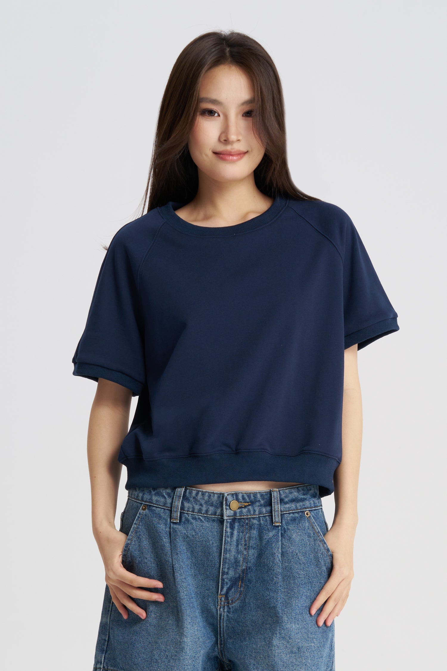A raglan tee that merges comfort with sporty ease. Defined by its relaxed silhouette, it features a classic crew neckline and short raglan sleeves that enhance mobility and add a casual edge. Ribbed trims at the collar, cuffs, and hem lend subtle structure, balancing the soft drape of the fabric. Effortlessly versatile, this piece works well for off-duty styling or as a layering essential in everyday wardrobes.