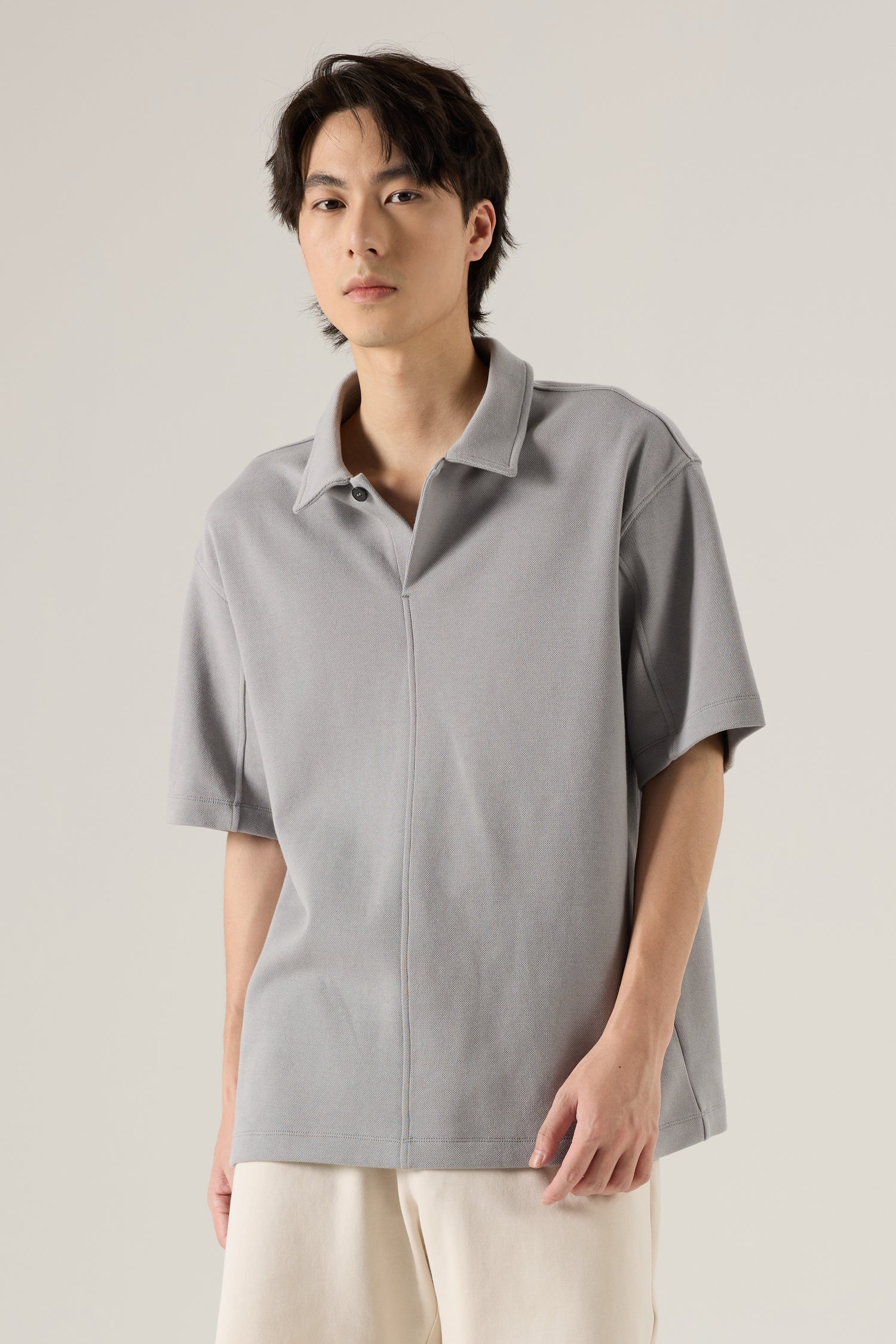 Clean, relaxed-fit polo with hidden placket and structured collar for a modern minimalist look.