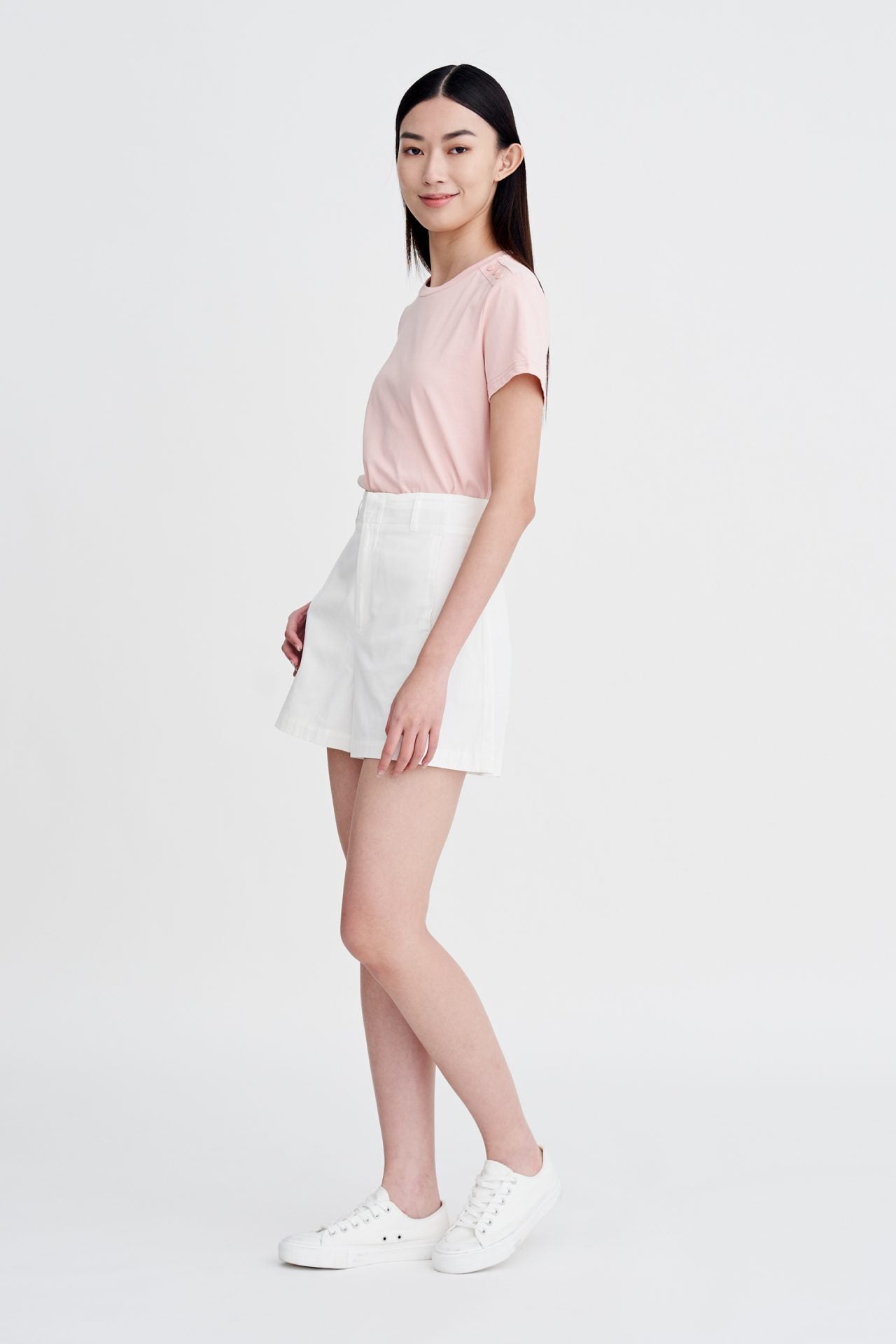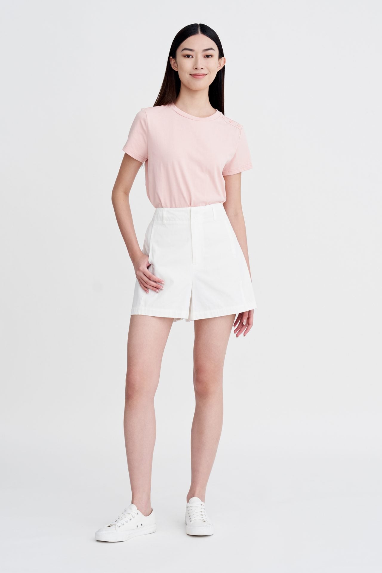 Classic reinvented; a regular crew neck tee featuring shoulder button detail to elevate your tee game. No matter if you’re on the go or feeling laidback, this all-year-round essential will definitely rejuvenate your wardrobe!