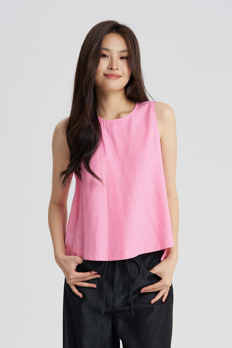 Keep it easy and stylish with this Striped Sleeveless Blouse. Lightweight and breezy, it drapes effortlessly for a relaxed fit, while the clean neckline and armholes give it a polished touch. Throw it on with your favourite jeans or shorts for weekend vibes, or pair it with casual skirts for a simple, everyday look.