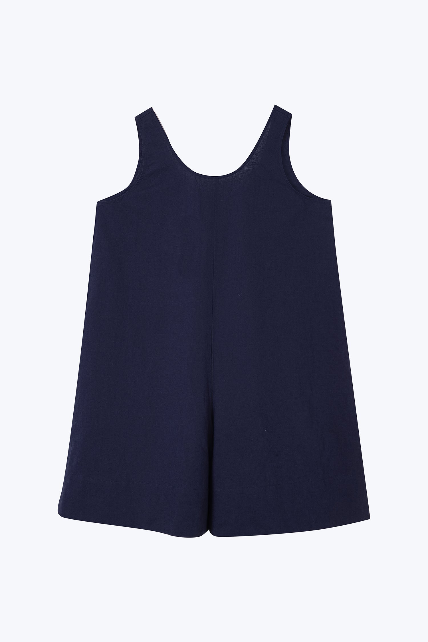 A relaxed U-neck romper crafted for effortless comfort and ease. Designed with a softly flared silhouette, it drapes naturally to allow free movement while keeping a clean, minimal finish. Made from a breathable blend of 60% cotton and 40% linen, it combines softness with airy lightness, making it perfect for warm weather. Wear it on its own for a laid-back summer look or style it with light layers for an understated yet refined outfit.