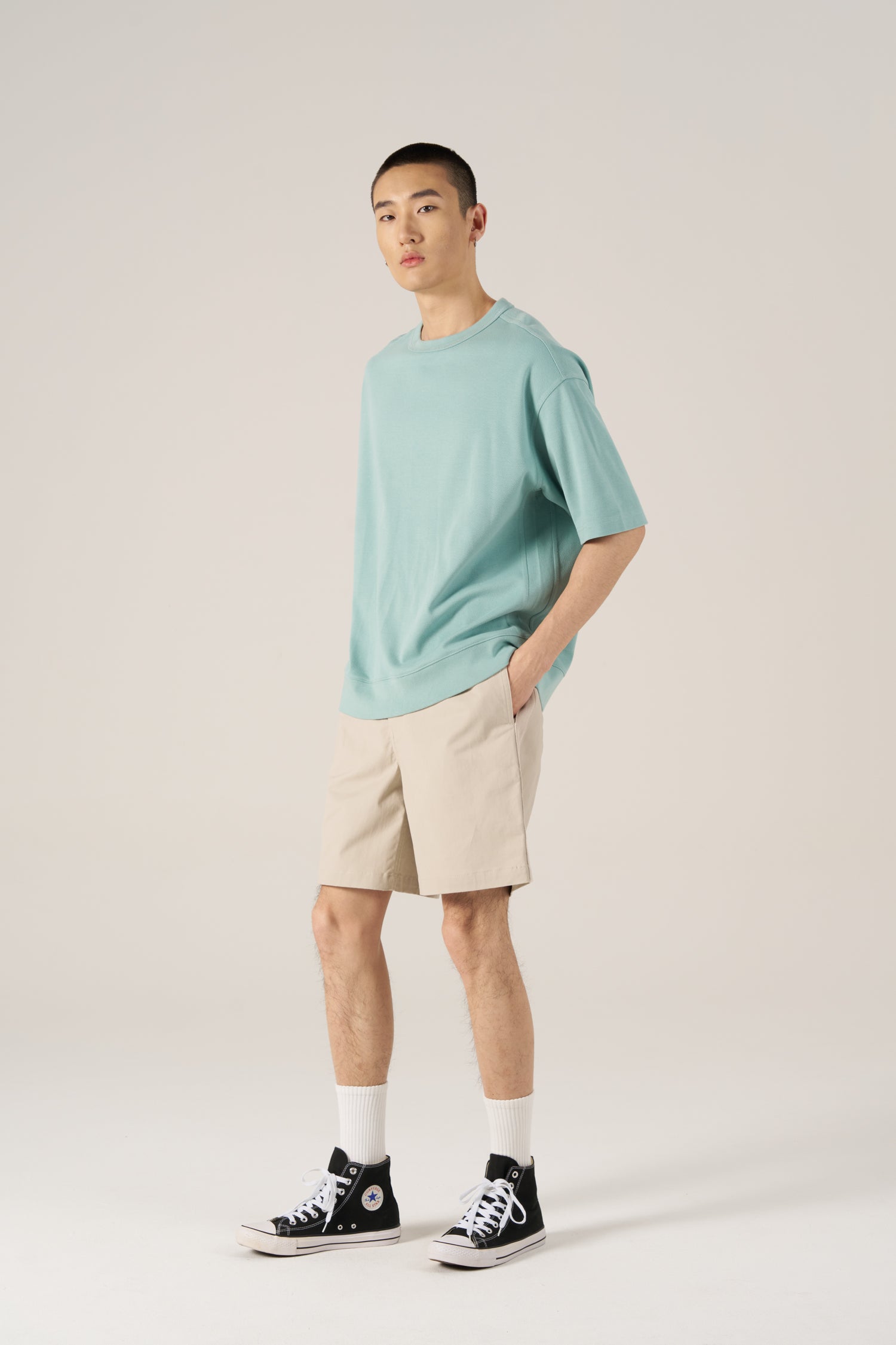 Relaxed shorts detailed with webbing trims along the side seams, adding a subtle utilitarian touch to the clean, everyday silhouette.