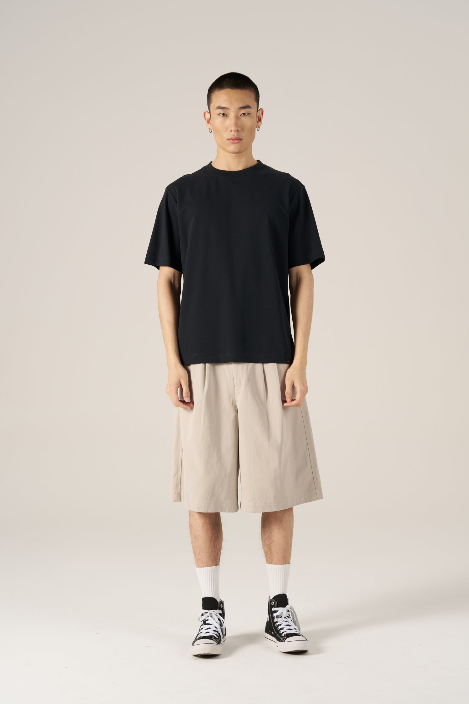Crafted from cotton twill, these shorts feature a wide-fit silhouette with front pleats for added volume and ease. A clean, versatile design ideal for effortless styling.